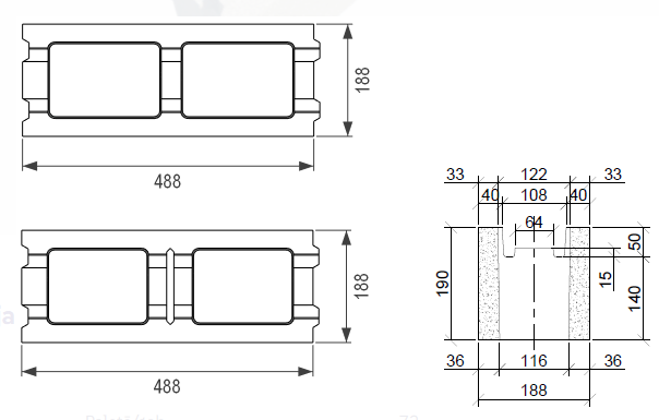 - Bloku patēriņš 2 gab./tm - 10 gab/m²