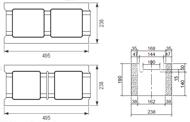 - Bloka izmērs: 495*240*H190 mm