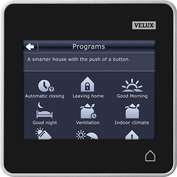 Izvēloties šo modeli, varēsiet regulēt visus elektriski vadāmos jumta logus, žalūzijas un ruļļveida slēģus ar vienu tālvadības pulti no jebkuras vietas mājā. Darbināms ar saules enerģiju