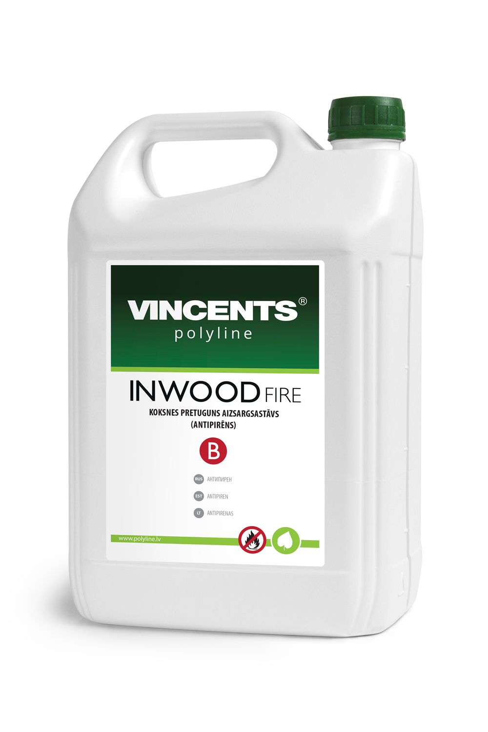 Antipirēnu INWOOD Fire B izmanto jaunās un rekonstruējamās būvēs – zāģmateriālu (latas, dēļi, spāres, brusas u.c.) apstrādei, kas nodrošina grūti degošas vai grūti uzliesmojošas koksnes iegūšanu. Antipirēnu INWOOD Fire B pielieto arī koksnes profilaktiskai pretuguns aizsargapstrādei slēgtās būvkonstrukcijās, kuras nav pakļautas tiešai atmosfēras nokrišņu iedarbībai (iekštelpās). Antipirēnu INWOOD Fire B var pārklāt ar cita veida pārklājumiem (lakas, krāsas ), lai uzlabotu koka ārējo apdari. Antipirēna INWOOD Fire B darbības mehānisms - uz koka virsmas veido plēves pārklājumu, kas liesmas iedarbībā pārvēršas sausā putu slānī un kavē liesmu piekļūšanu koksnes virsmai. Nav toksisks, nesatur polibrominētos difenilēterus (PBDE). Nesamazina koksnes stiprību un neizsauc metāla koroziju. Pēc darba beigšanas instrumentus mazgāt ar lielu ūdens daudzumu (īpaši alumīnija daļas).